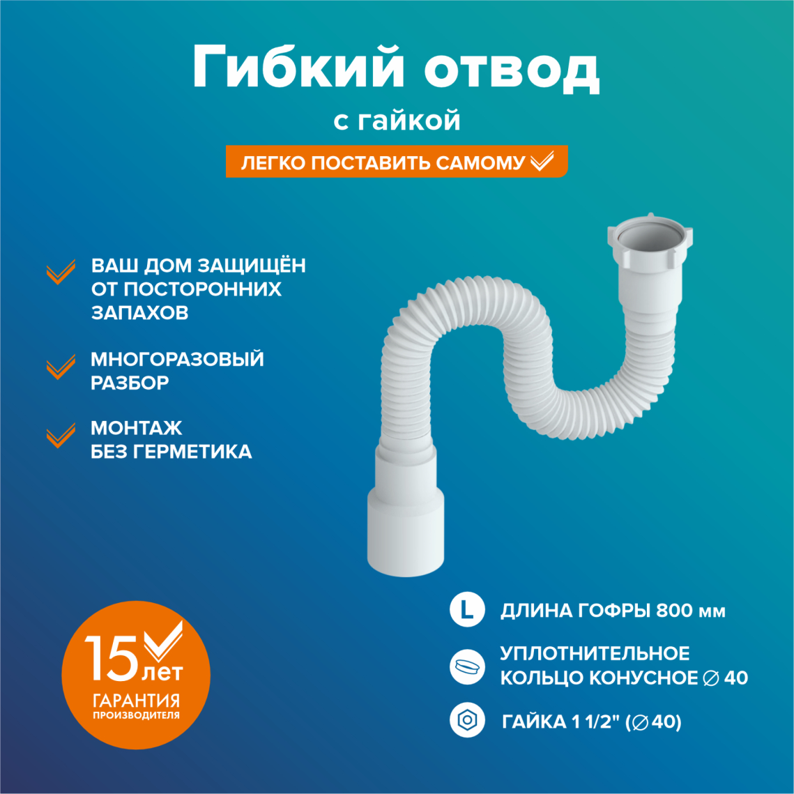 Диаметр сливого отверстия: 40 мм (в комплекте переходник на 50 мм).